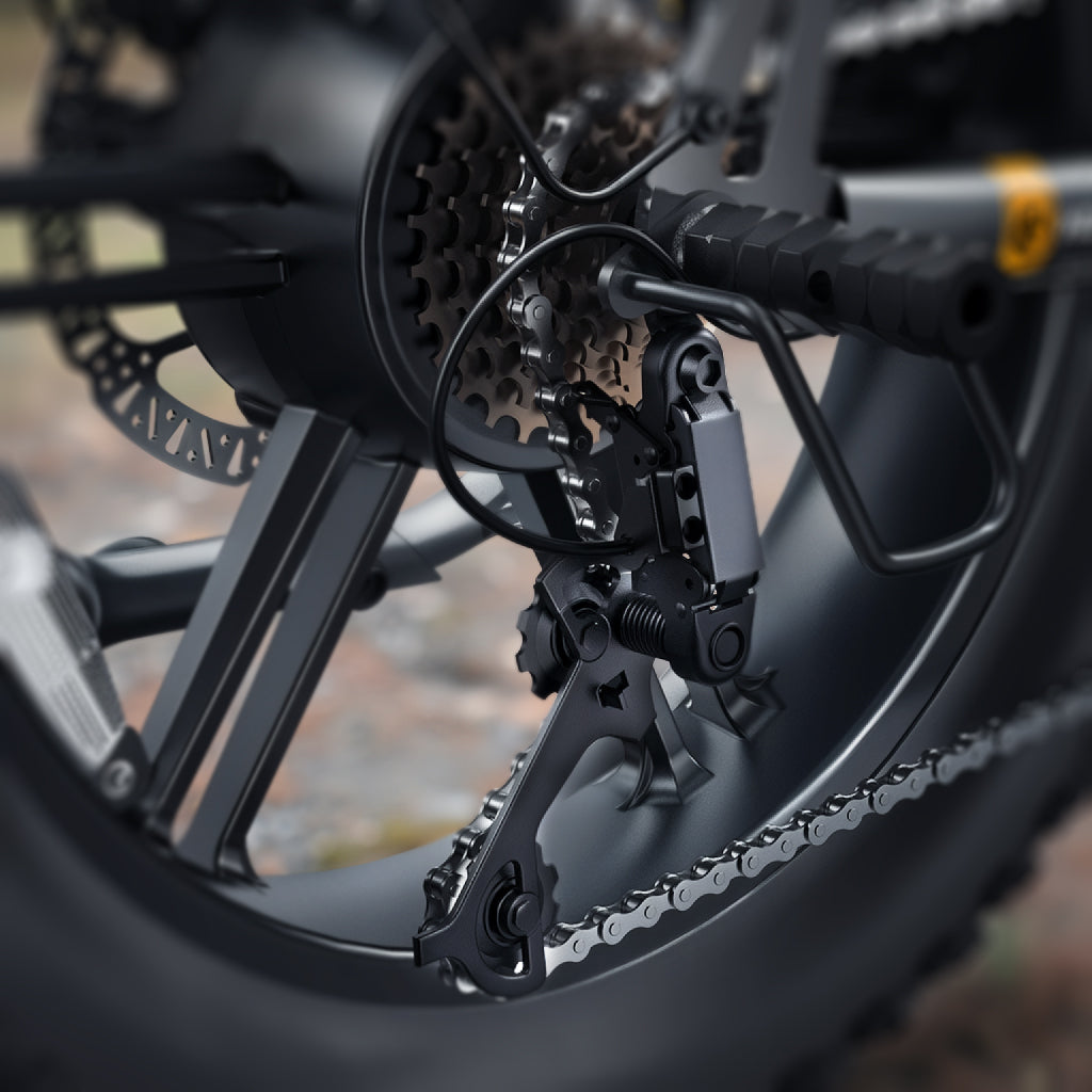 The HovGtrs Ultra, HovGtrs Evo, and HovGtrs Pro all feature a full suspension setup, combining a dual-spring rear shock with a hydraulic fork. The dual-spring rear system balances rebound and compression for smooth, consistent damping under all conditions, while the front fork absorbs front-end impacts and improves steering stability. Together, they minimize vibration, boost traction, and deliver a comfortable, controlled ride—whether you’re cruising city streets or tackling rugged off-road trails.