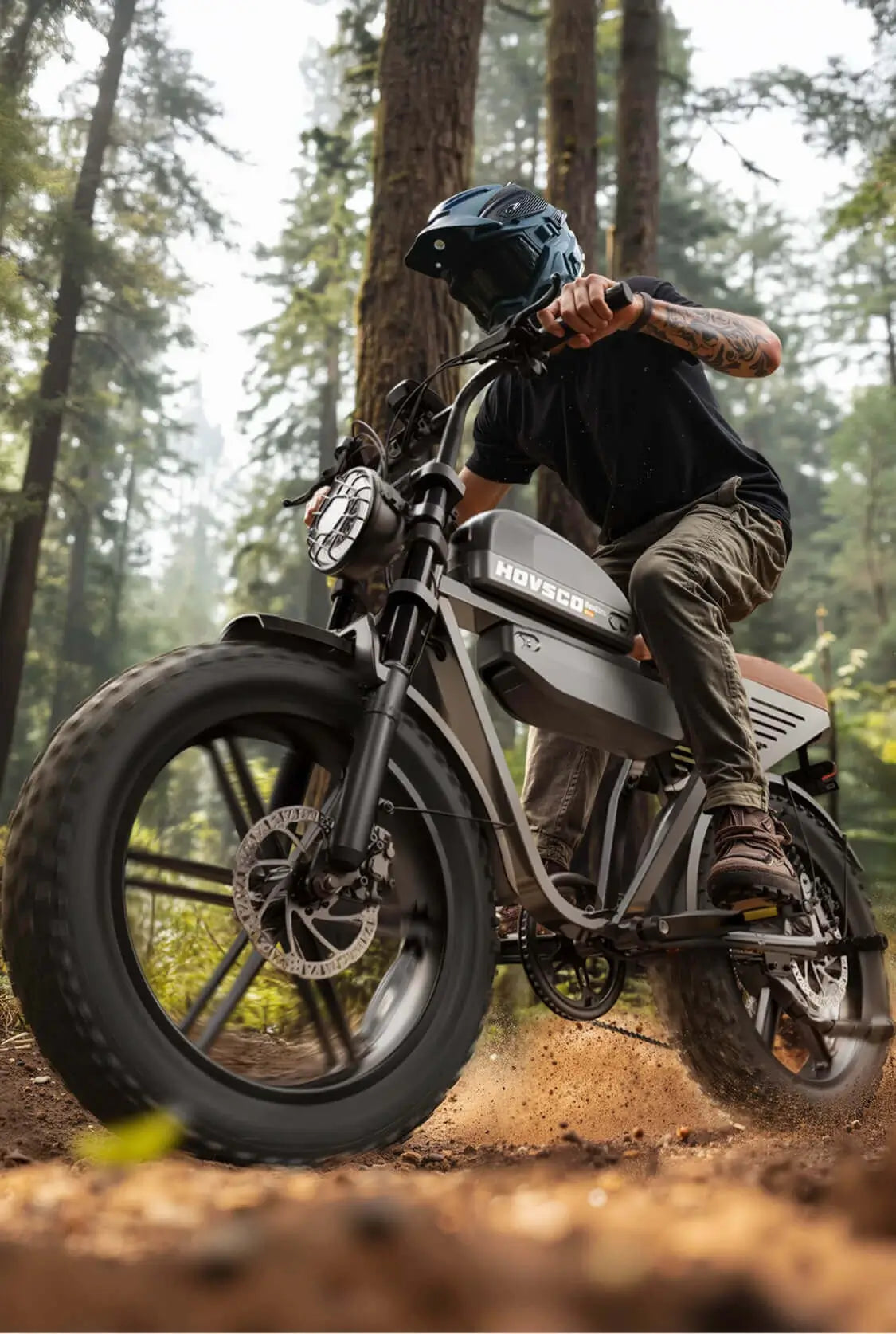 The HovGtrs Ultra, HovGtrs Evo, and HovGtrs Pro make city commutes and off-road adventures effortless. Equipped with high-torque 90Nm and up to 1500W peak power, these bikes conquer hills and rough trails with ease. With full suspension and wide all-terrain tires, they deliver a smooth, stable, and fun riding experience.