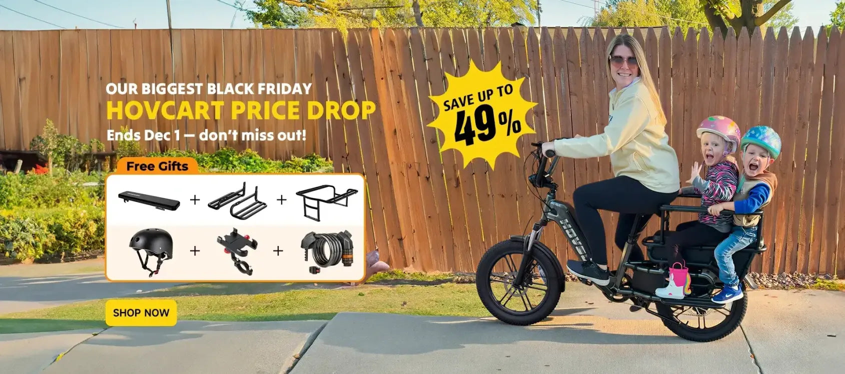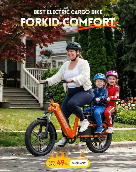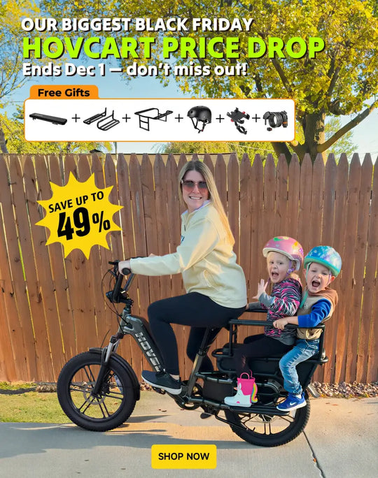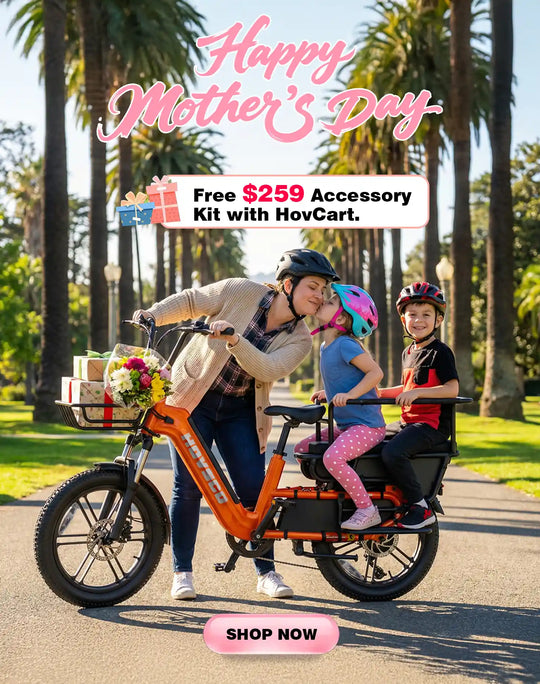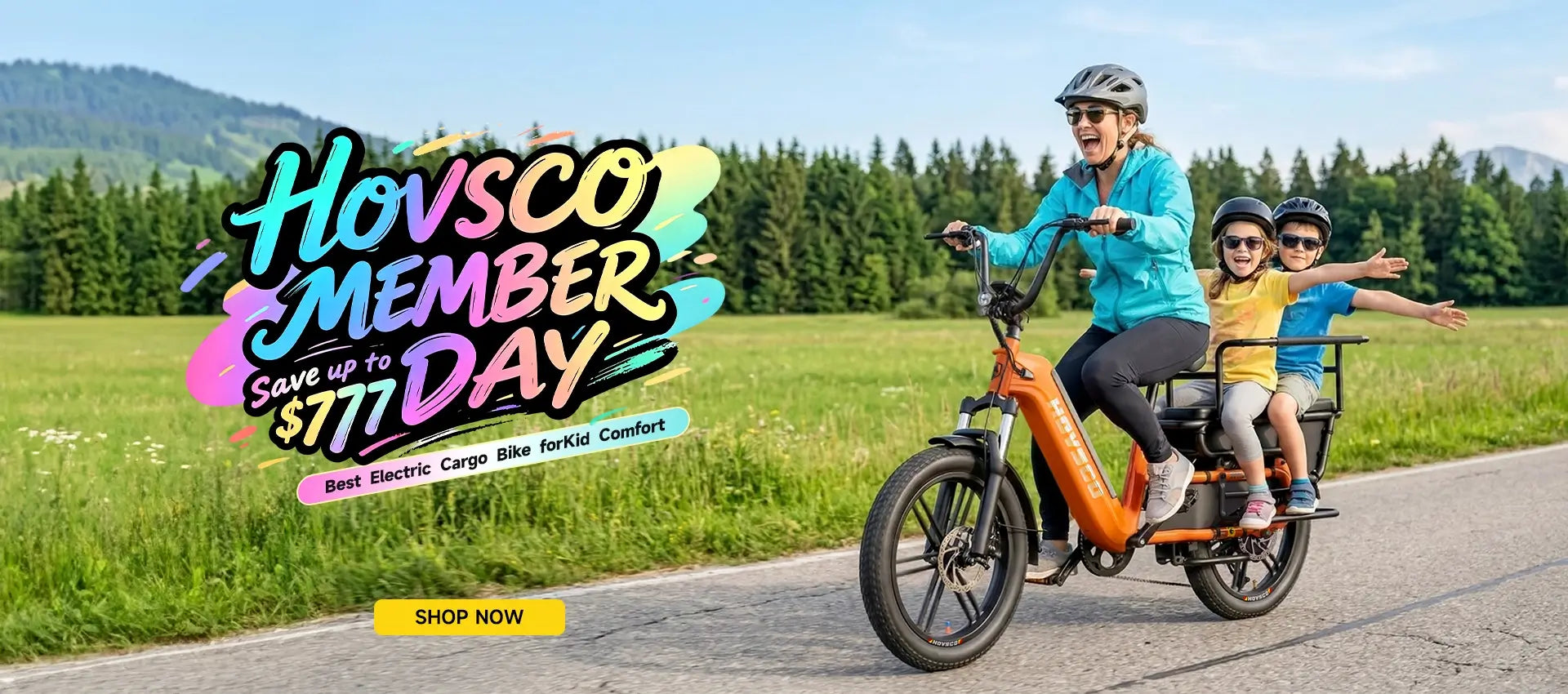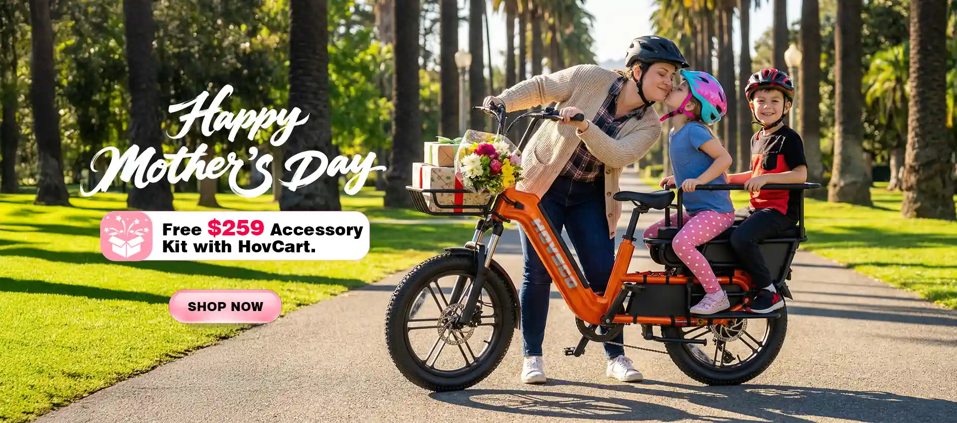 Hi! Our HOVSCO e-bike has made family travel so fun! The kids love rides and get excited every time. We use it for school pick-up, park trips, lunch dates, and just cruising. It brings us all joy! We’ve added accessories like turn signals, mirrors, a water bottle holder, and bags — it’s been awesome!