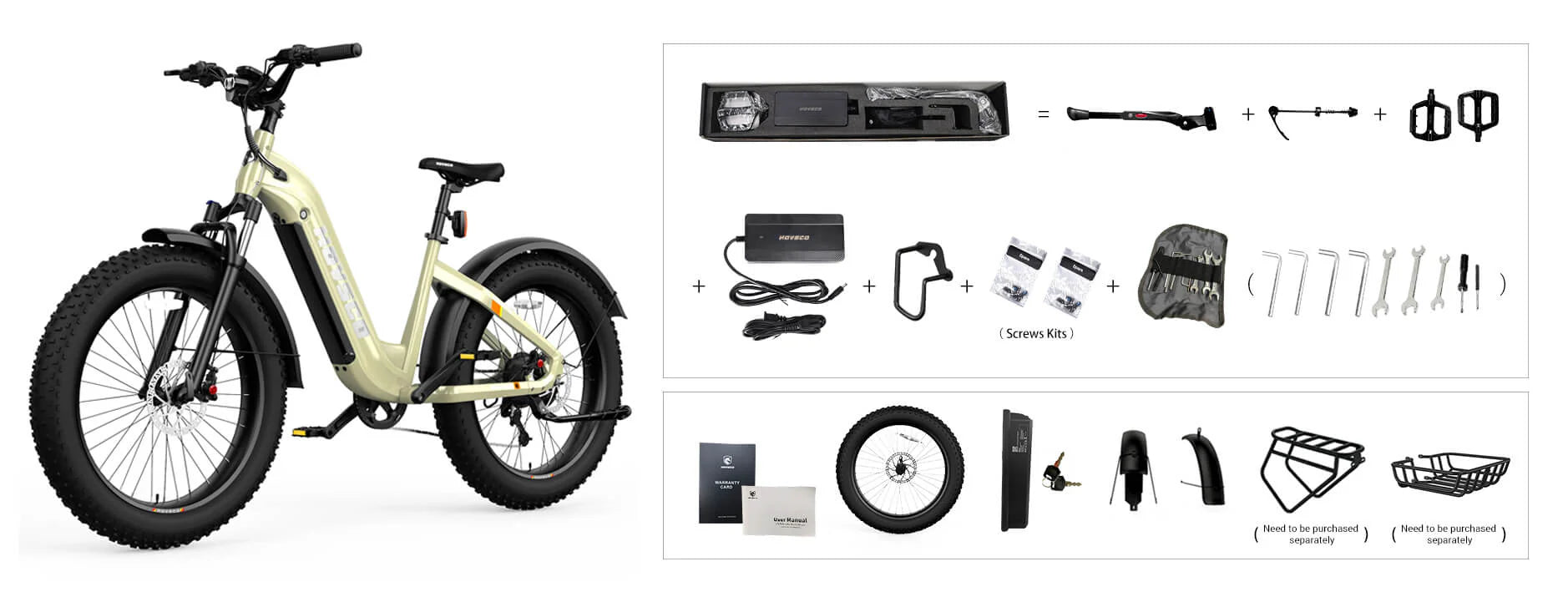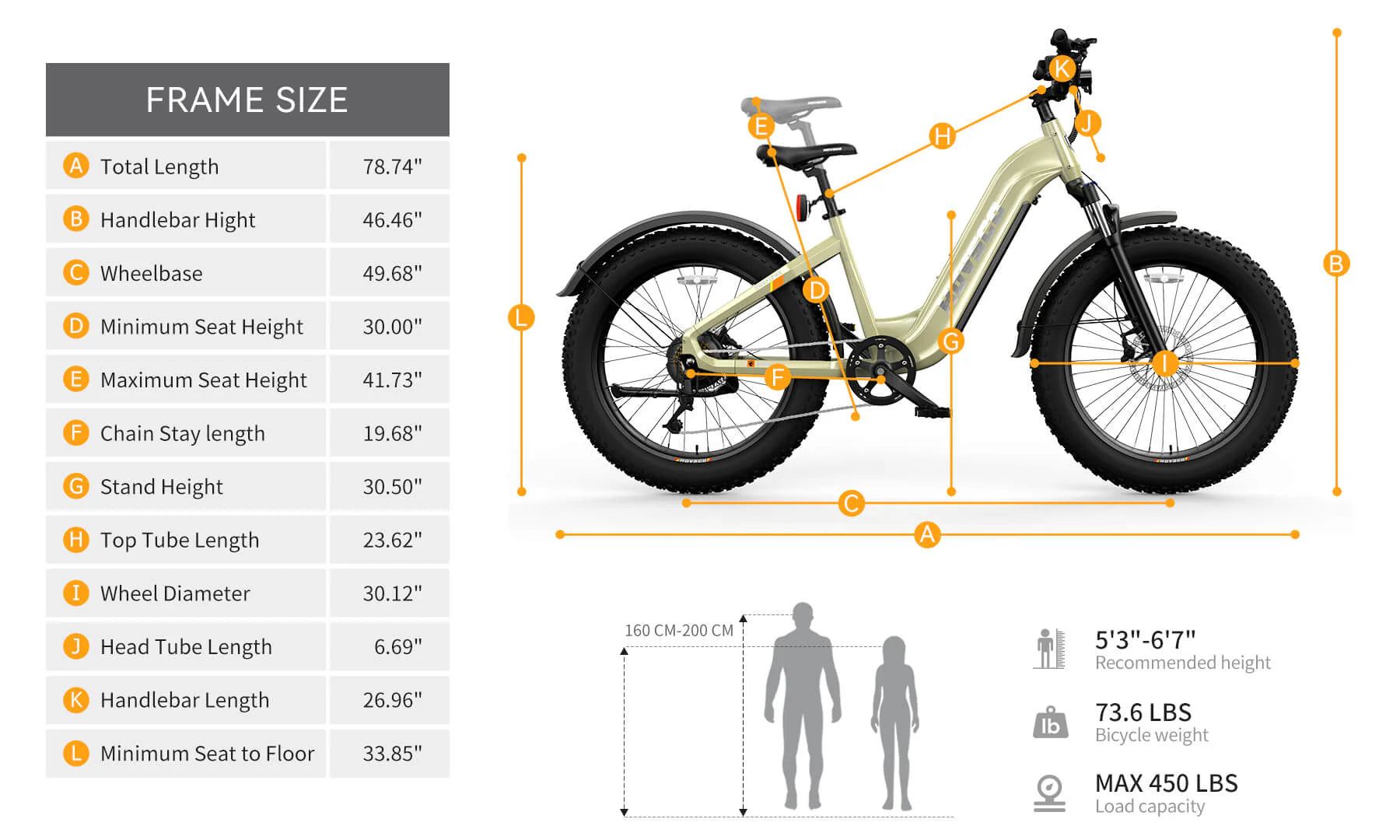 Enjoy peace of mind while riding, rain or shine, with our waterproof electric bike for an effortless riding experience. Go All Out, get all the gear you need for your next journey.Easy to hop on & off. Accessible to all riders.The fully height-adjustable seat gives you a more comfortable & customized riding experience, and ensures that riders can find the perfect fit.