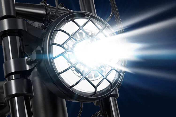 The high-brightness front LED ensures a well-lit path ahead with its impressive long-range beam.