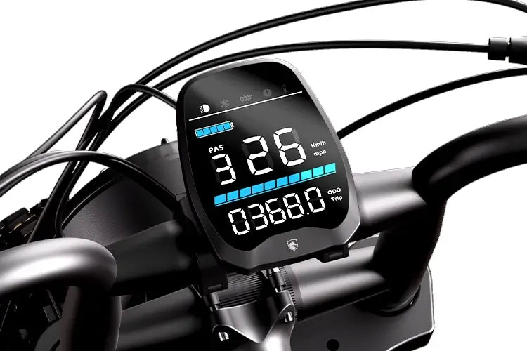 On this LED display you will find information such as your speed, battery life, pedal assistance level and distance traveled.