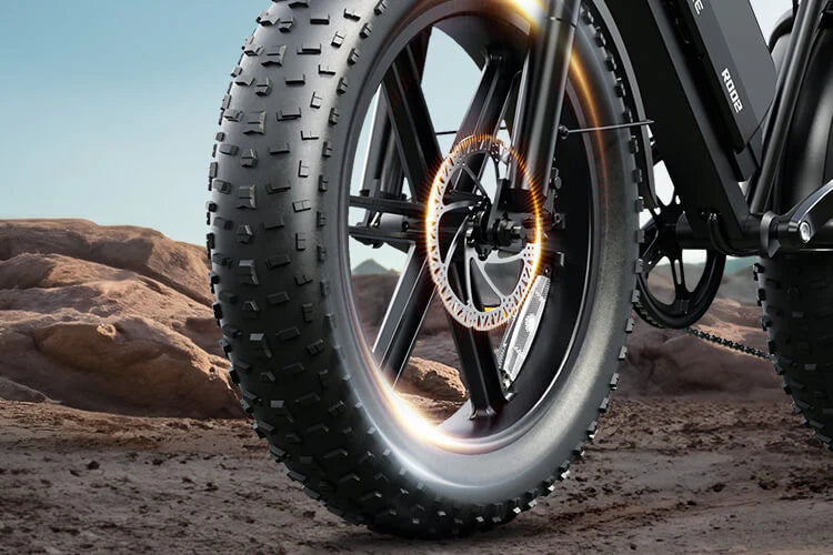 Built for stability and traction, these all-terrain fat tires ensure a smooth, confident ride on sand, snow, gravel, or pavement.