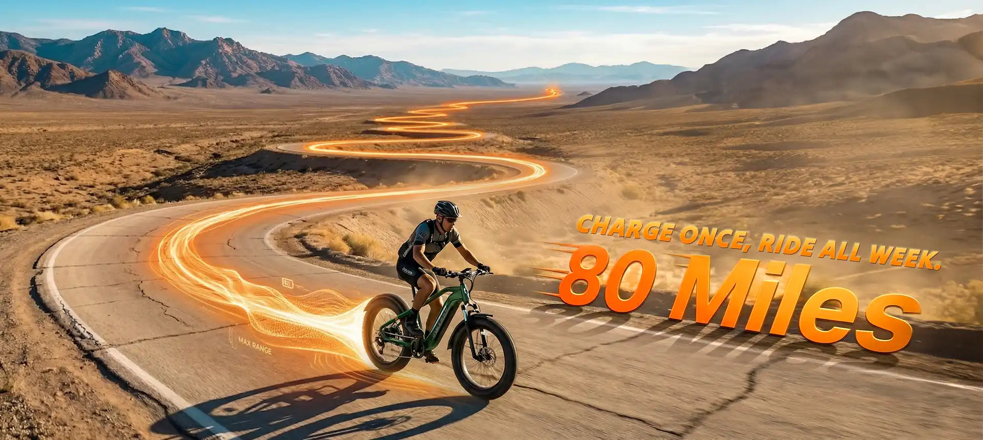 Go the distance with a massive 80-mile extended range on a single charge. Designed for long-distance commuters and weekend explorers, this high-capacity battery ensures you can finish your journey with power to spare—no more range anxiety, just pure riding freedom.