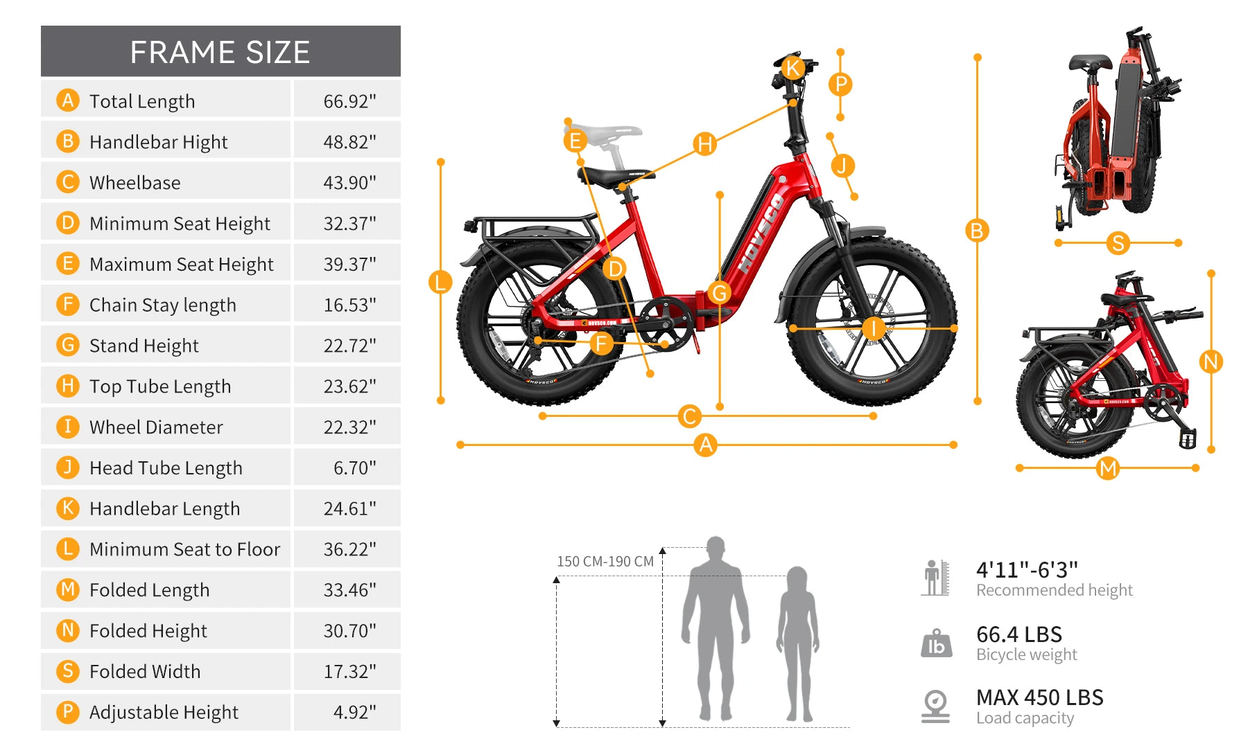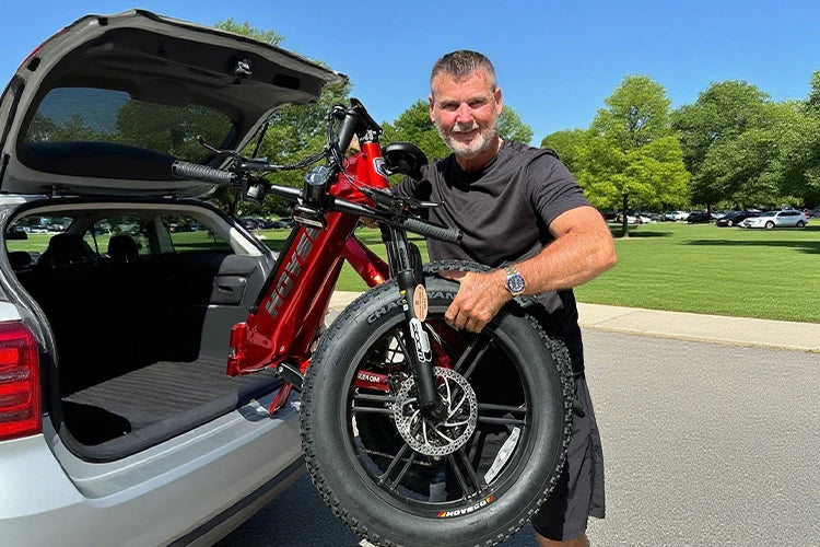It only takes two steps to fold the bike and put it in the trunk. With its adjustable stem, seat, and step-thru frame,it allows different sized riders to use the bike easily and improves overall comfort when riding on rough terrain.