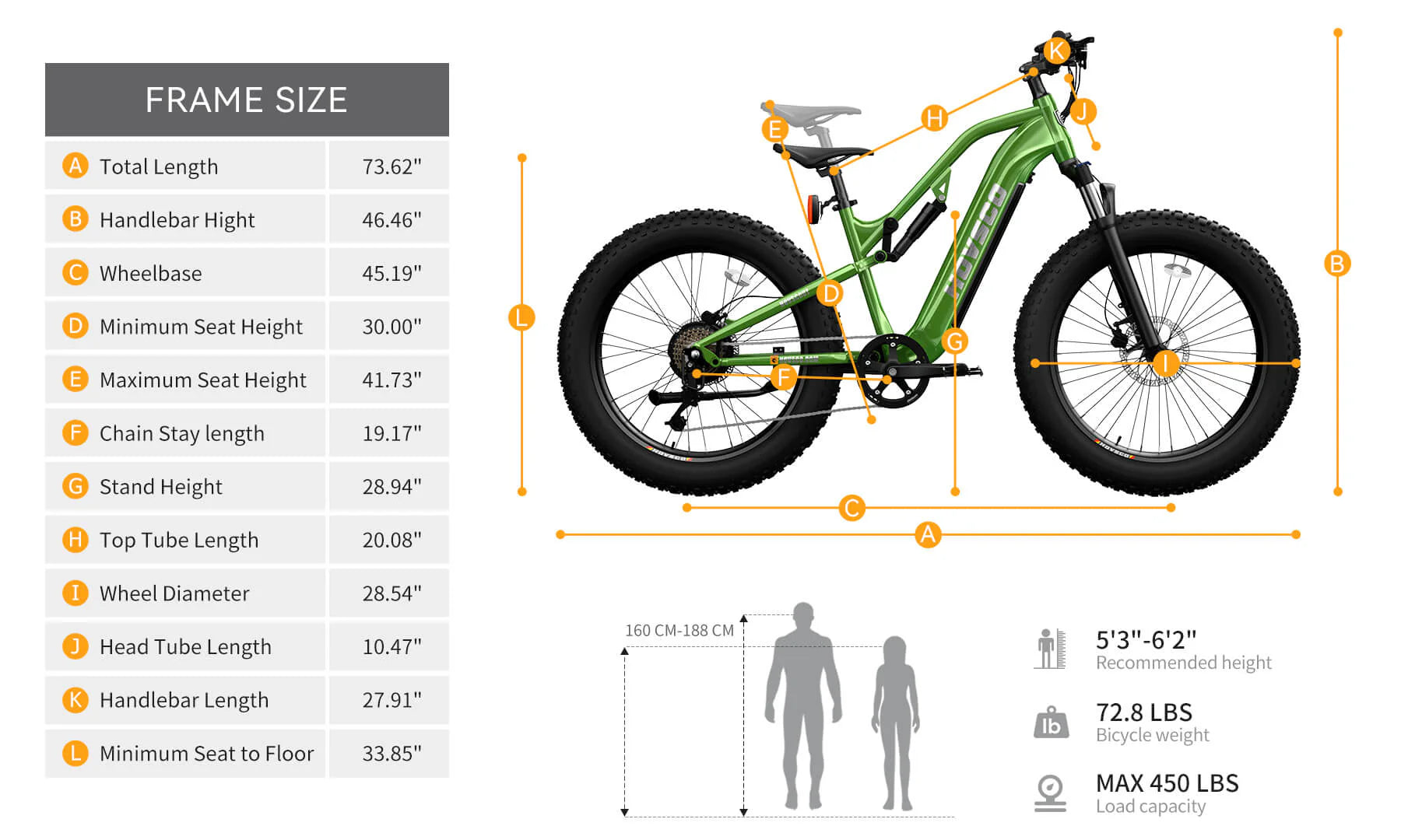 HovScout ebike has front and rear suspension elements to improve comfort and handling. The rear four-bar linkage suspension features adjustable rebound controls and a lockout mode for optimal pedaling efficiency, while the coil suspension ensures front stability. These provide excellent vibration absorption and balance from front to back when climbing steep hills or accelerating rapidly from a stop, which makes it easy to conquer rough terrain.